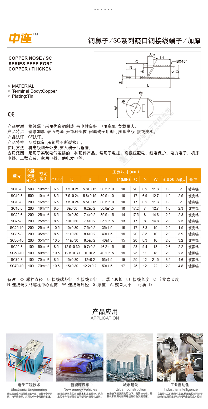 SC系列窥口铜接线端子(加厚)